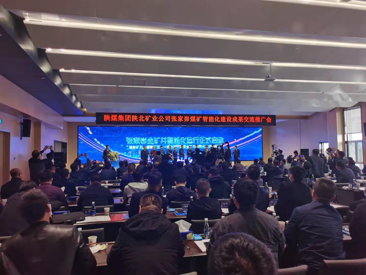 2021年10月19日,中國(guó)煤炭工業(yè)協(xié)會(huì)組織有關(guān)專家在陜西省神木市召開了“智能化煤礦巨系統(tǒng)關(guān)鍵技術(shù)裝備研發(fā)與示范應(yīng)用”科技成果鑒定及交流推廣會(huì)。中國(guó)煤炭工業(yè)協(xié)會(huì)副會(huì)長(zhǎng)、中國(guó)煤炭學(xué)會(huì)理事長(zhǎng)劉峰,中國(guó)工程院院士彭蘇萍、武強(qiáng)、王雙明、王國(guó)法、中國(guó)科學(xué)院院士何滿朝,北京科技大學(xué)校長(zhǎng)楊仁樹,中國(guó)礦業(yè)大學(xué)校長(zhǎng)宋學(xué)鋒,中國(guó)礦業(yè)大學(xué)(北京)校長(zhǎng)葛世榮,遼寧工程技術(shù)大學(xué)黨委書記、校長(zhǎng)梁冰,中煤能源集團(tuán)科技發(fā)展部管曾倫,陜西省信息研究院、西安電子科技大學(xué)張小平,陜煤集團(tuán)黨委委員、副總經(jīng)理尚建選、王世斌,陜北礦業(yè)公司黨委書記、董事長(zhǎng)、總經(jīng)理郭佐寧,副總經(jīng)理遲寶鎖、?;⒚鞯阮I(lǐng)導(dǎo)參加會(huì)議。