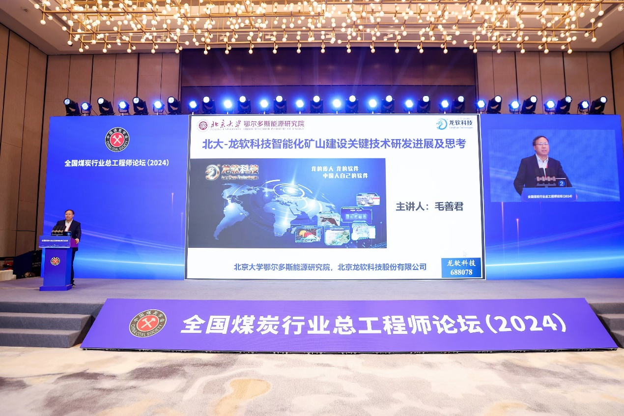 在為期兩天的論壇中,多位嘉賓發(fā)表了精彩的演講和報告。其中,北京大學(xué)教授、北京龍軟科技股份有限公司董事長、北大鄂爾多斯能源研究院首席科學(xué)家毛善君的主旨報告《智能化礦山建設(shè)關(guān)鍵技術(shù)研發(fā)進(jìn)展及思考》尤為引人注目。毛善君教授詳細(xì)介紹了龍軟科技-北京大學(xué)團(tuán)隊在智能化煤礦建設(shè)方面的創(chuàng)新成果和實(shí)踐經(jīng)驗(yàn),提出了高級智能化礦井建設(shè)的6626工程,并分享了團(tuán)隊在煤礦裝備智能化、地測透明化、分析在線化、智能系統(tǒng)化、控制協(xié)同化、生產(chǎn)綠色化等方面取得的顯著成果。