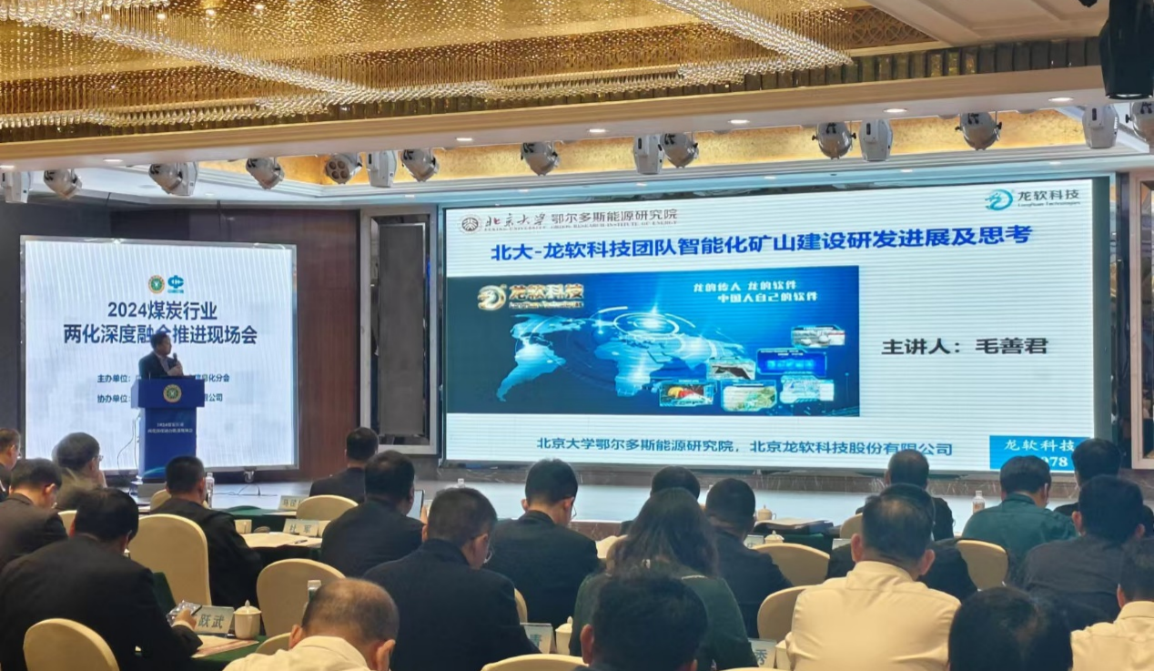 會議期間,來自煤炭行業(yè)的專家、學(xué)者和企業(yè)代表齊聚一堂,共同探討了新技術(shù)、新模式和新業(yè)態(tài)在煤炭行業(yè)的落地應(yīng)用。龍軟科技應(yīng)邀參加此次會議,北京大學(xué)教授、北京龍軟科技股份有限公司董事長、北大鄂爾多斯能源研究院首席科學(xué)家毛善君在大會上作了題為《北大-龍軟科技團隊智能化礦山建設(shè)研發(fā)進度及思考》的專題報告。