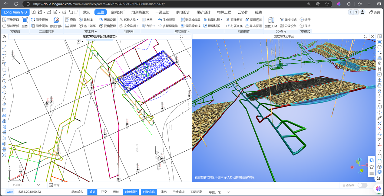 在會議現(xiàn)場,毛善君教授還演示了基于全新云服務(wù)架構(gòu)的龍軟智圖云GIS平臺。該平臺是公司自主研發(fā)、具有完全自主知識產(chǎn)權(quán)的新一代專業(yè)地理信息系統(tǒng)。可通過企業(yè)私有云或服務(wù)器部署,只需輸入一個IP地址,即可在企業(yè)內(nèi)部通過瀏覽器隨時隨地使用,按權(quán)限訪問使用云GIS數(shù)據(jù)和功能,實現(xiàn)礦井地質(zhì)、測量、通風(fēng)、安全、機電、采掘等專業(yè)礦圖的多人在線協(xié)同處理,動態(tài)更新形成實時的礦井“一張圖”和地測模型服務(wù),為煤礦高效安全生產(chǎn)管理和智能化建設(shè)提供保障。