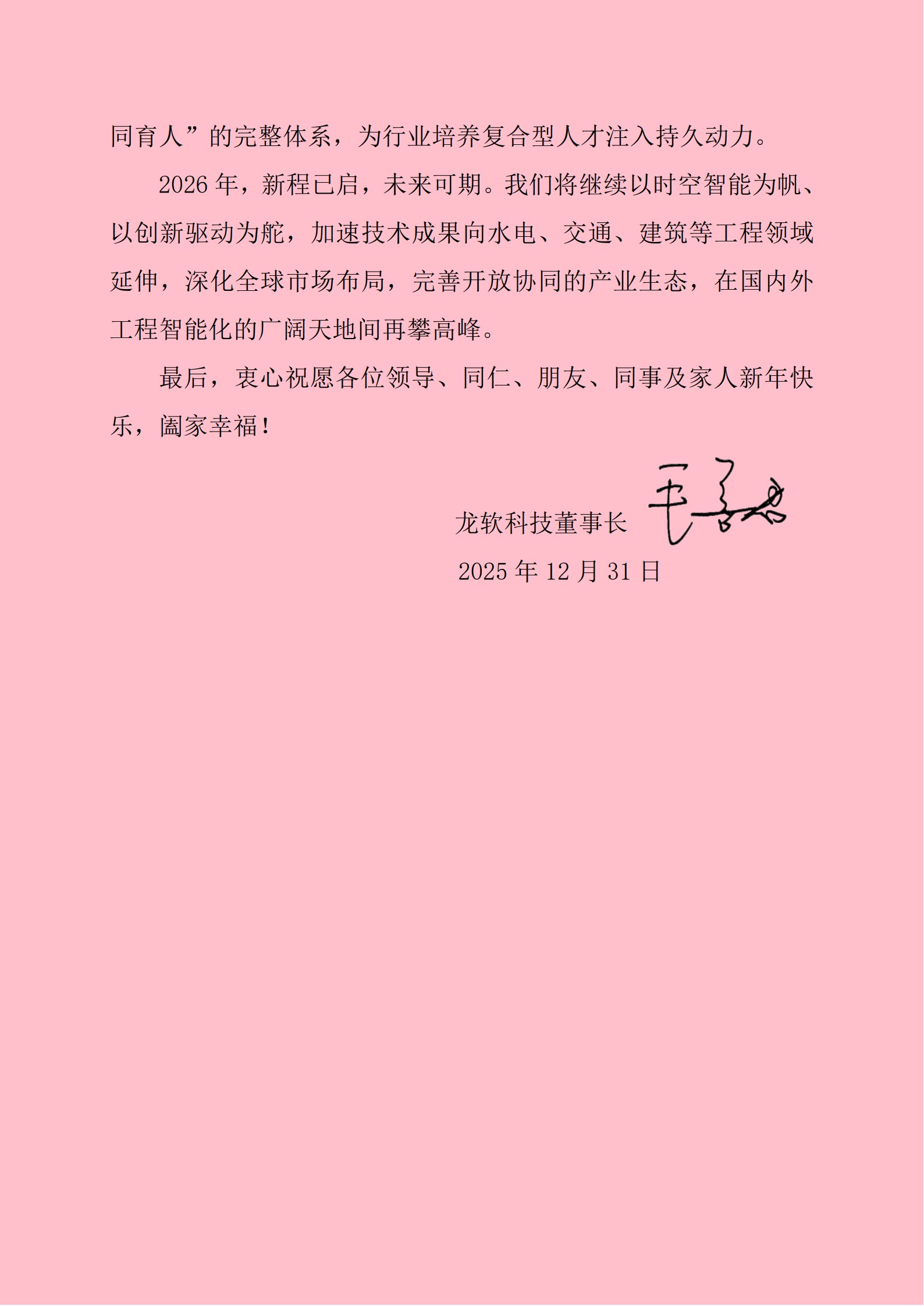 2025年7月,公司董事長(zhǎng)、北京大學(xué)地球與空間科學(xué)學(xué)院教授毛善君向北京大學(xué)教育基金會(huì)無(wú)償捐贈(zèng)250萬(wàn)股龍軟科技股票(當(dāng)日收盤價(jià)合計(jì)7725萬(wàn)元),支持地球與空間科學(xué)學(xué)院教育事業(yè)的發(fā)展。