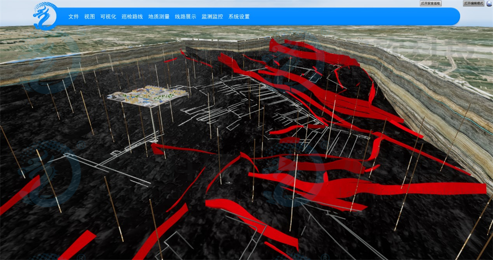 系統(tǒng)按照《煤礦防治水細(xì)則》、《煤礦地質(zhì)工作規(guī)定》和《煤礦安全生產(chǎn)標(biāo)準(zhǔn)化管理體系基本要求及評(píng)分方法》等對(duì)煤礦地測(cè)防治水信息化的相關(guān)規(guī)定,以及國(guó)家發(fā)展改革委等八部委聯(lián)合下發(fā)的《關(guān)于加快煤礦智能化發(fā)展的指導(dǎo)意見》、中國(guó)煤炭學(xué)會(huì)標(biāo)準(zhǔn)《智能化煤礦(井工)分類、分級(jí)技術(shù)條件與評(píng)價(jià)》(T/CCS 01- 2020)對(duì)智能地質(zhì)保障的要求,為安全生產(chǎn)、地質(zhì)災(zāi)害預(yù)警、智能開采、智能掘進(jìn)、智能管控等提供高精度三維地質(zhì)模型和業(yè)務(wù)數(shù)據(jù)的集成與應(yīng)用服務(wù)為目標(biāo),采用云計(jì)算、協(xié)同TGIS、虛擬現(xiàn)實(shí)、移動(dòng)互聯(lián)網(wǎng)、大數(shù)據(jù)分析等先進(jìn)技術(shù),基于一張圖管理理念,開展高精度地質(zhì)探測(cè)、物探數(shù)據(jù)再解釋、多源地質(zhì)數(shù)據(jù)融合等,建立地質(zhì)信息數(shù)據(jù)庫(kù),形成煤礦專業(yè)地理信息系統(tǒng)平臺(tái)、地質(zhì)一張圖Web協(xié)同平臺(tái)、高精度透明地質(zhì)保障平臺(tái)、地質(zhì)大數(shù)據(jù)分析與隱蔽致災(zāi)預(yù)警報(bào)警分析和預(yù)警平臺(tái),形成面向云計(jì)算和大數(shù)據(jù)的智能礦山透明地質(zhì)保障系統(tǒng)。