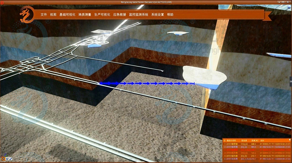 ( 6)地質(zhì)大數(shù)據(jù)分析與隱蔽致災(zāi)預(yù)警報(bào)警分析和預(yù)警平臺(tái)?;邶堒浽破脚_(tái),對(duì)煤礦地層、構(gòu)造、煤層、煤質(zhì)、瓦斯、水文和其它地質(zhì)條件、地質(zhì)特征及其變化規(guī)律進(jìn)行可視化智能分析,實(shí)現(xiàn)隱蔽致災(zāi)因素(水害、瓦斯、沖擊地壓等)的預(yù)測(cè)預(yù)報(bào),基于巷道、地層和生產(chǎn)的時(shí)空關(guān)系,進(jìn)行危險(xiǎn)源的遠(yuǎn)程可視化智能預(yù)警。